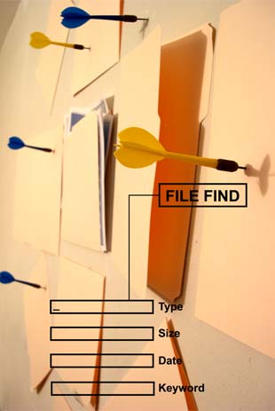 Concept: My research and concerns led me to look at the technology of computer and user interaction. Each poster deals with one topic of the problem: identity theft or security, file management, and information retrieval. When designing the poster I wanted the imagery and photography to reflect the rough chunkiness of computing.