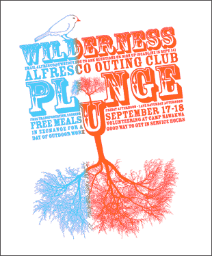Concept: The concept was to make the poster clearly visible and also stay environmentally savvy. I decided instead of making hundreds of letter-sized black and white photocopies to go with 50 poster-sized prints on recycled newsprint. Each design was hand screen printed with the help of the club to keep the cost down. The paper and printing style give the posters a natural, rugged style that was then carried over to the website.