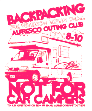 Problem: The Alfresco Outing Club at the University of Wisconsin-Stout wanted posters designed to help boost club attendance. They also wanted a website that could be easily updated and would provide students another way to sign up for trips.