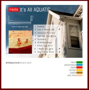 Concept: To communicate the sound and feeling of the band I used large photographs and band-approved graphics. Layout resembles a Polaroid with a large picture on top and white space on the bottom. I also made an mp3 player in Flash which made it nearly impossible to download the band's music.