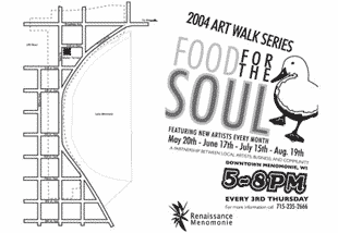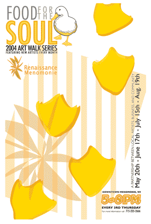 Problem:The Menomonie area Chamber of Commerce wanted a fun, quirky design to promote its summer sidewalk art tour which would be quickly recognizable in store windows.