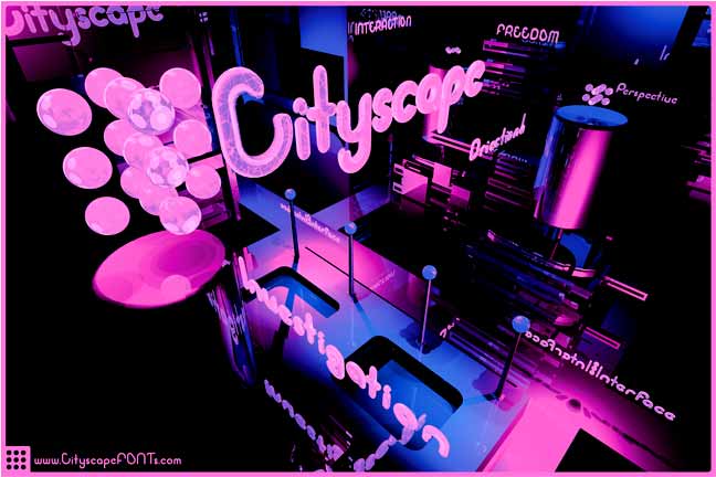 After the typeface fell short of meeting my conceptual goals I still needed to promote it. I used a dirty tech feel similar to “Blade Runner” and I called the 2D font “Private Eye ” and the 3D font “Cityscape ”. The 3D font sits inside a dark city that has buildings that look like computer parts , and in this mess of computer noise the Cityscape font would help guide your way.